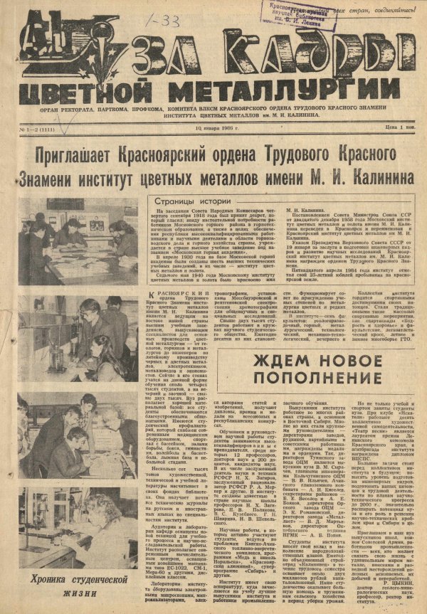- Металлургический факультет. Специальность 0402 "Металлургия цветных металлов" : [о специальности инженера-металлурга]. — С. 2.
