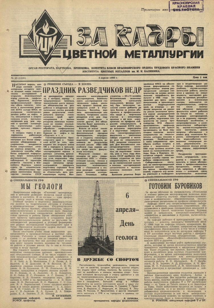 - Мы геологи : [кафедра "Геология месторождений и методики разведки"]. — С. 1.