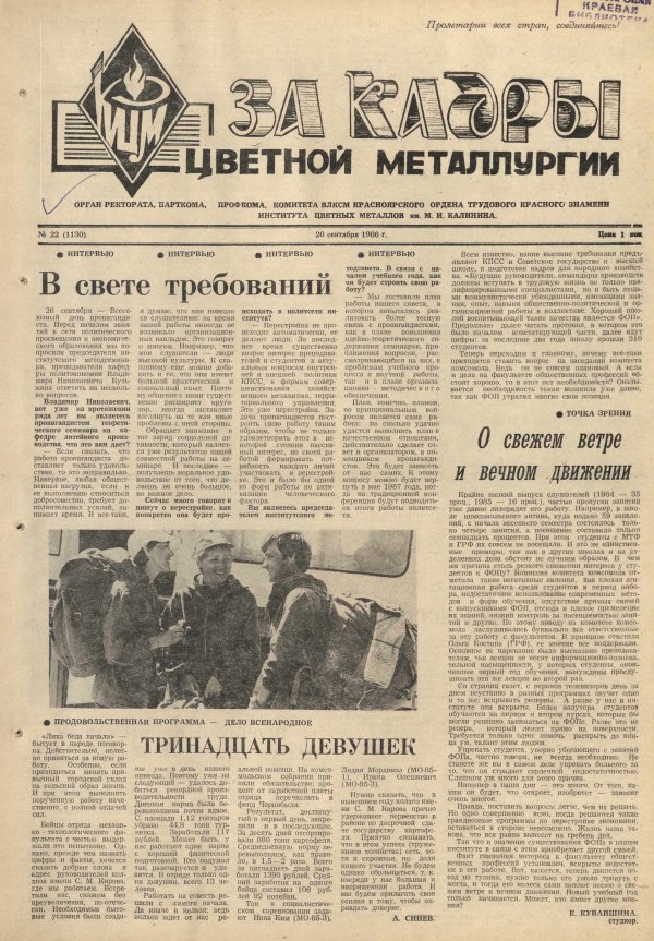 - О свежем ветре и вечном движении : [в чем причина резкого снижения интереса студентов к ФОПу]. — С. 1.