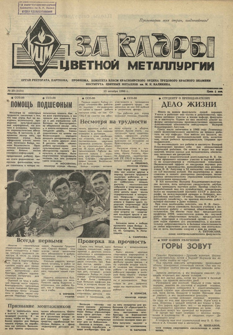 - Проверка на прочность : [комиссар ССО "Электромеханик" о проделанной работе отряда]. — С. 1.