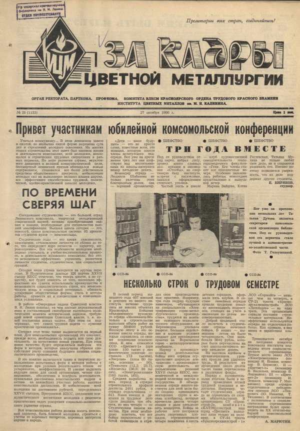 - Несколько строк о трудовом семестре : [объединенный вузовский отряд "Калининец-86"]. — С. 1.