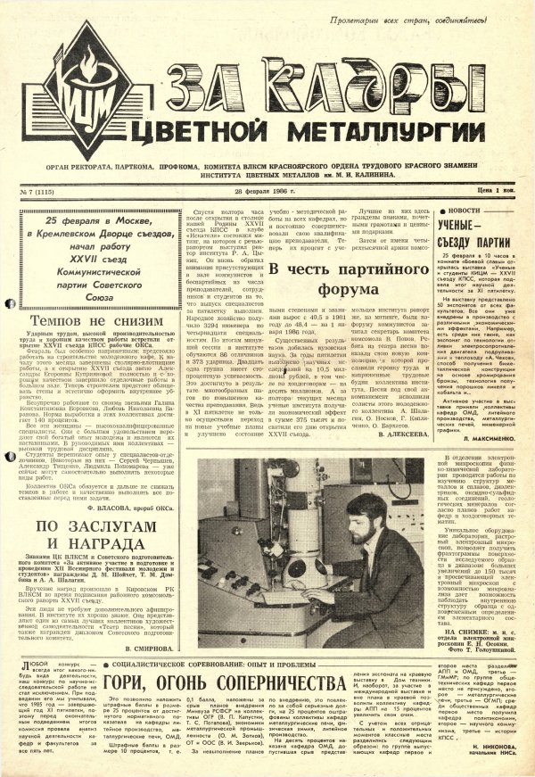 - В честь партийного форума : [митинг в клубе "Искатели", посвященный открытию XXVII съезда КПСС]. — С. 1.