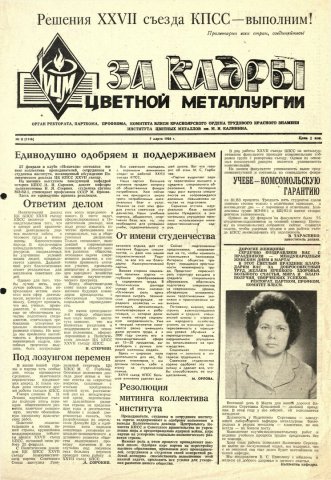 - Единодушно одобряем и поддерживаем : [митинг, посвященный обсуждению Политического доклада ЦК КПСС XXVII съезду (27 февраля)]. — С. 1.