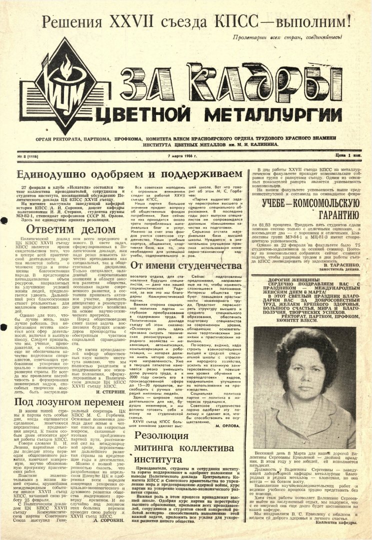 - [Международный женский день] : [поздравления от ректората, парткома, профкома, комитета ВЛКСМ]. — С. 1.