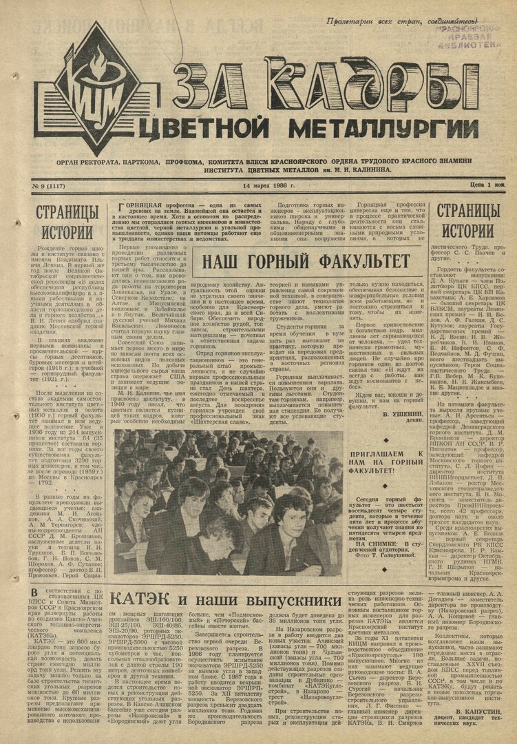 - Страницы истории [горного факультета]. — С. 1.