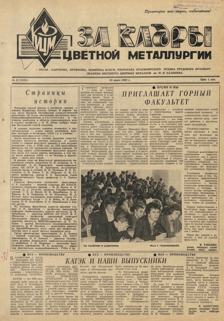 - Страницы истории : [создания горного факультета]. — С. 1.