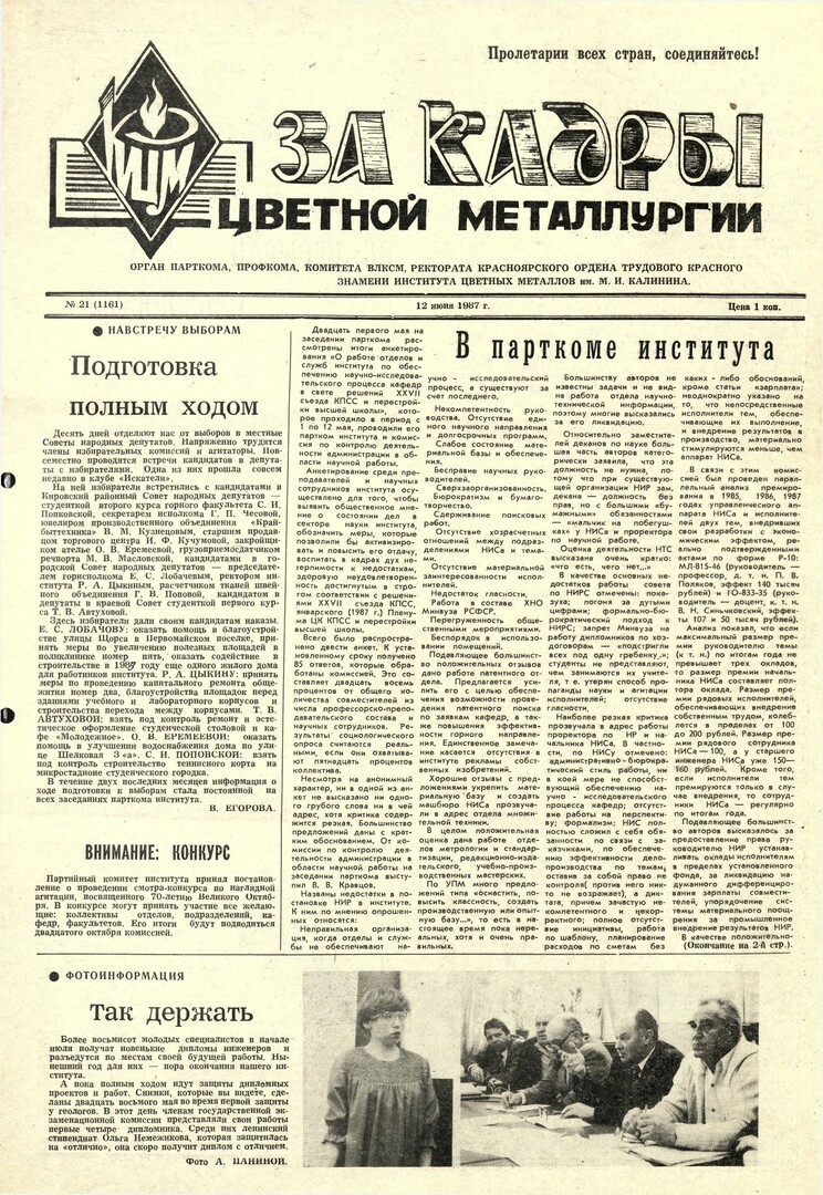 - В парткоме института : [рассмотрение итогов анкетирования на парткоме (21 мая)]. — С. 1,2.
