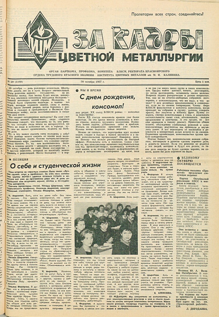 - С днем рождения, комсомол! : [чем живет комсомол]. — С. 1.