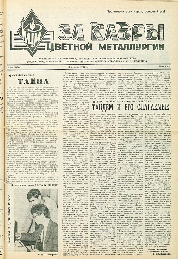 За кадры цветной металлургии : газета. 1987 г. № 33 (1173) (11 декабря)выпуск журнала/газеты