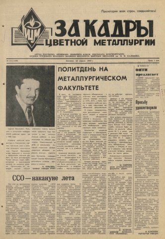 - Политдень на металлургическом факультете : [встреча ректора И. И. Смирнова с коллективом МФ]. — С. 1.