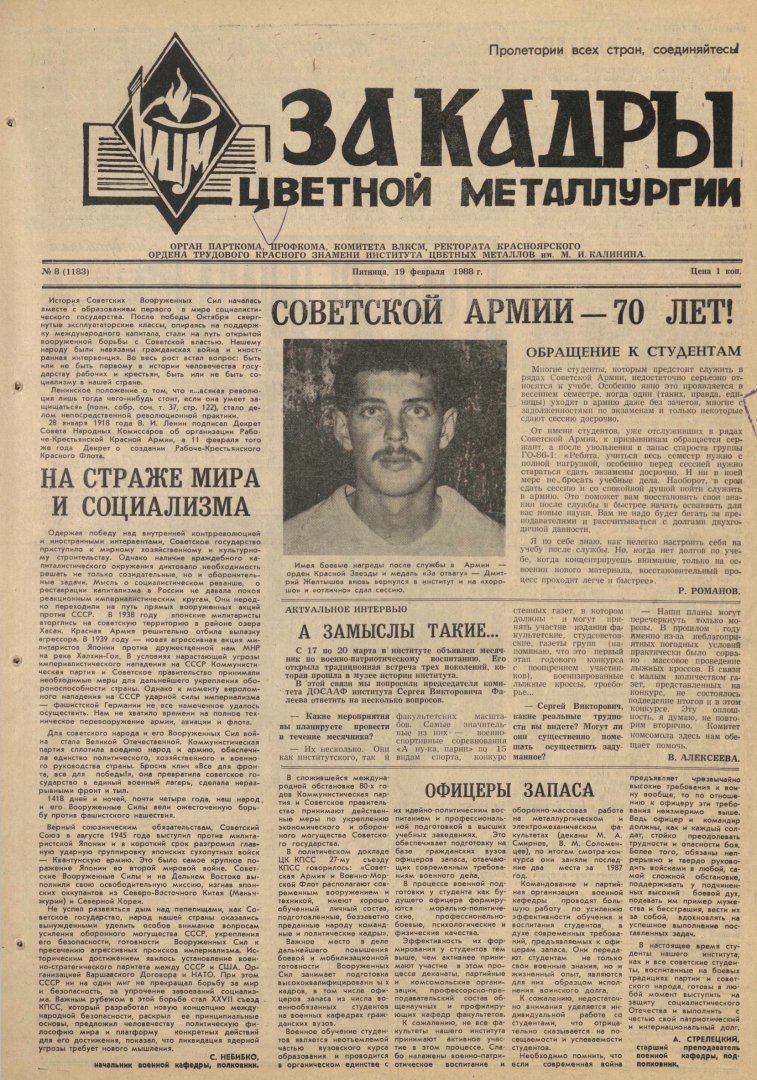 - Поздравляем : [70-летием Вооруженных Сил СССР]. — С. 2.