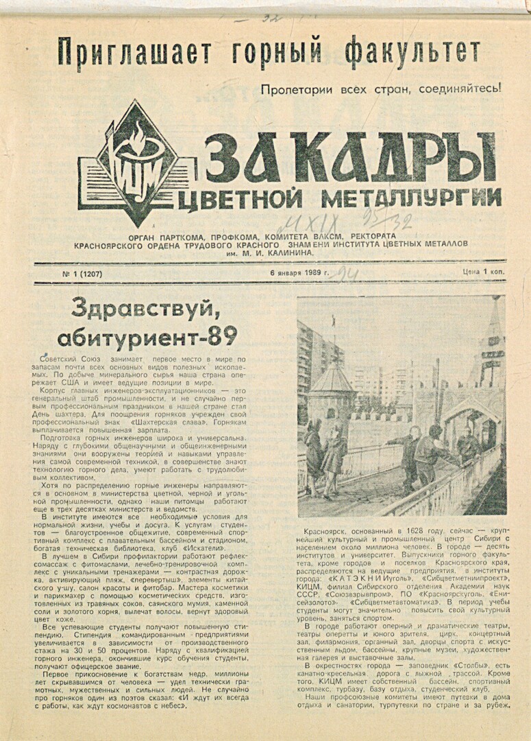 - Здравствуй, абитуриент-89! : [условия для нормальной жизни, учебы и досуга в институте]. — С. 1.