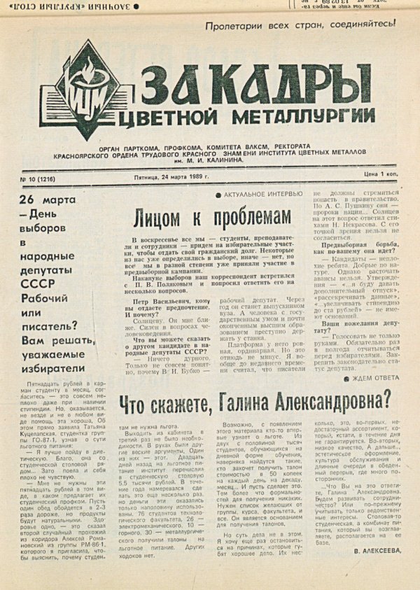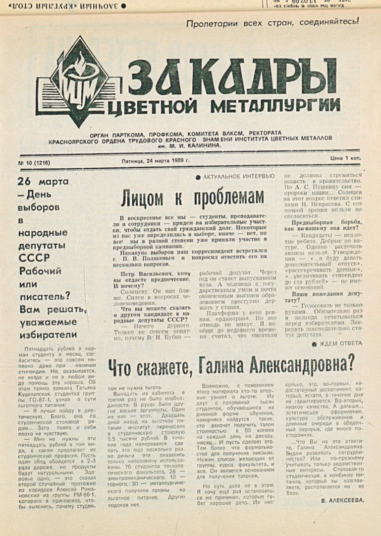 - Поздравляем! : [П. И. Коньков избран народным депутатом СССР (14 марта 1989 г.)]. — С. 2.