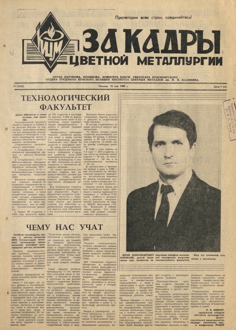- Технологический факультет : [подготовка инженеров-металлургов, специальности и правила приема]. — С. 1.