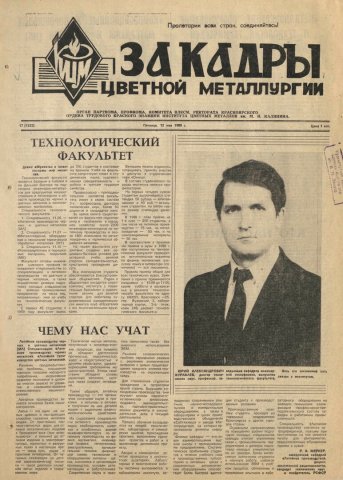 - Чему нас учат : [специальность "Литейное производство черных и цветных металлов"]. — С. 1.