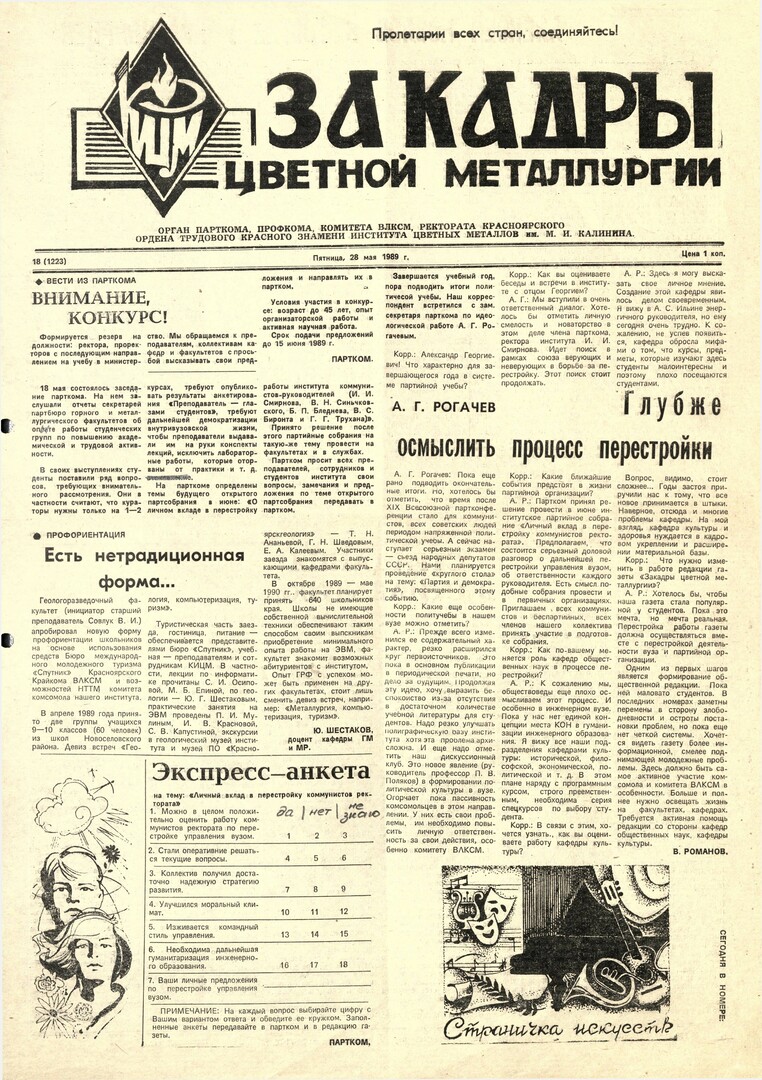- Экспресс-анкета : [на тему: "Личный вклад в перестройку коммунистов ректората"]. — С. 1.партком