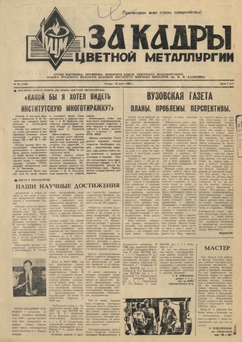 - Вузовская газета. Планы. Проблемы. Перспективы. — С. 1.