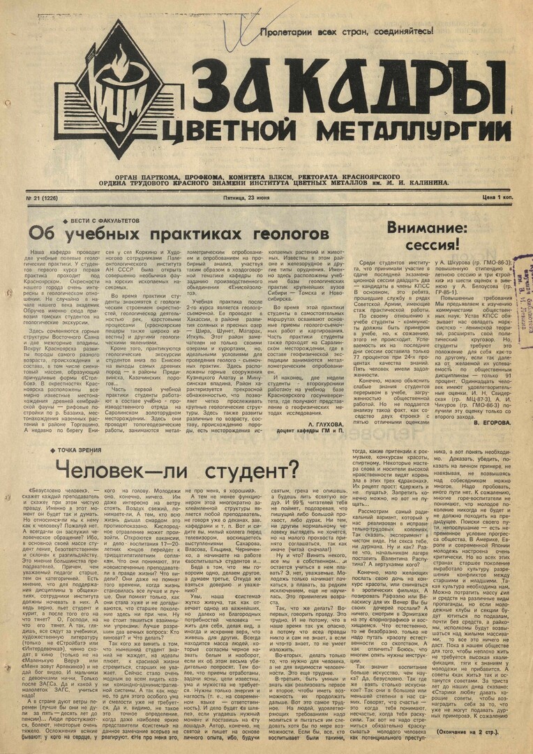 - Об учебных практиках геологов : [практика студентов первого и второго курса]. — С. 1.