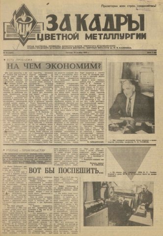 За кадры цветной металлургии : газета. 1990 г. № 13 (1251) (19 октября)выпуск журнала/газеты
