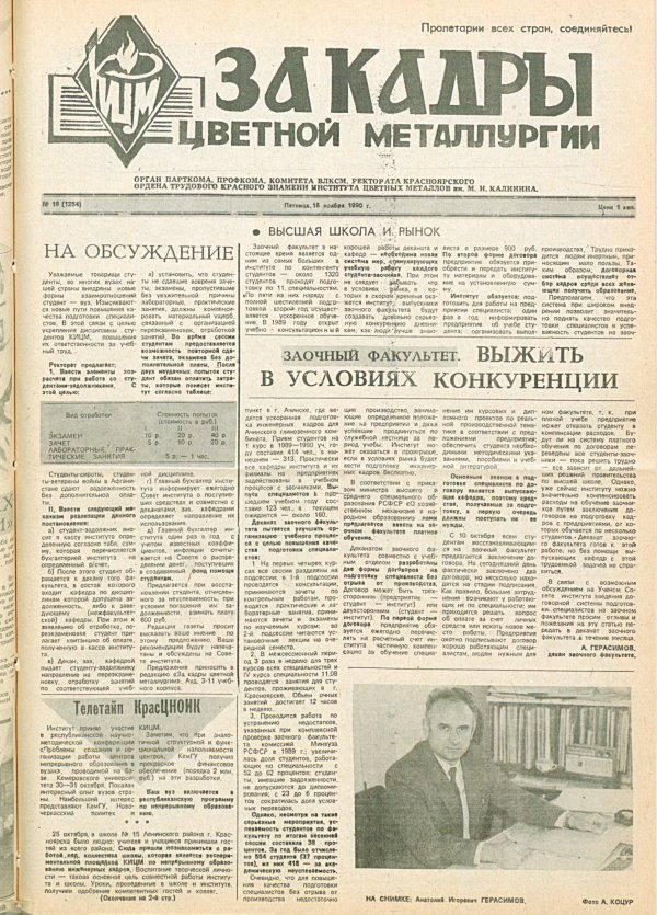 За кадры цветной металлургии : газета. 1990 г. № 16 (1254) (16 ноября)выпуск журнала/газеты