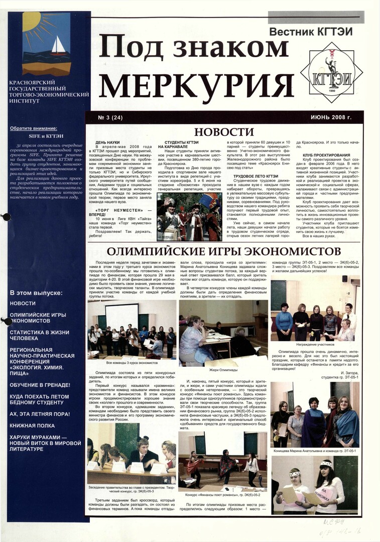 - Олимпийские игры экономистов : [олимпиада по финансам в КГТЭИ (29.05.2008)]. — С. 1.