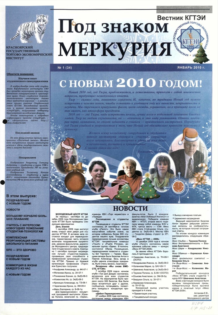Под знаком Меркурия : Вестник КГТЭИ. 2010 г. № 1 (34) (январь)выпуск журнала/газеты