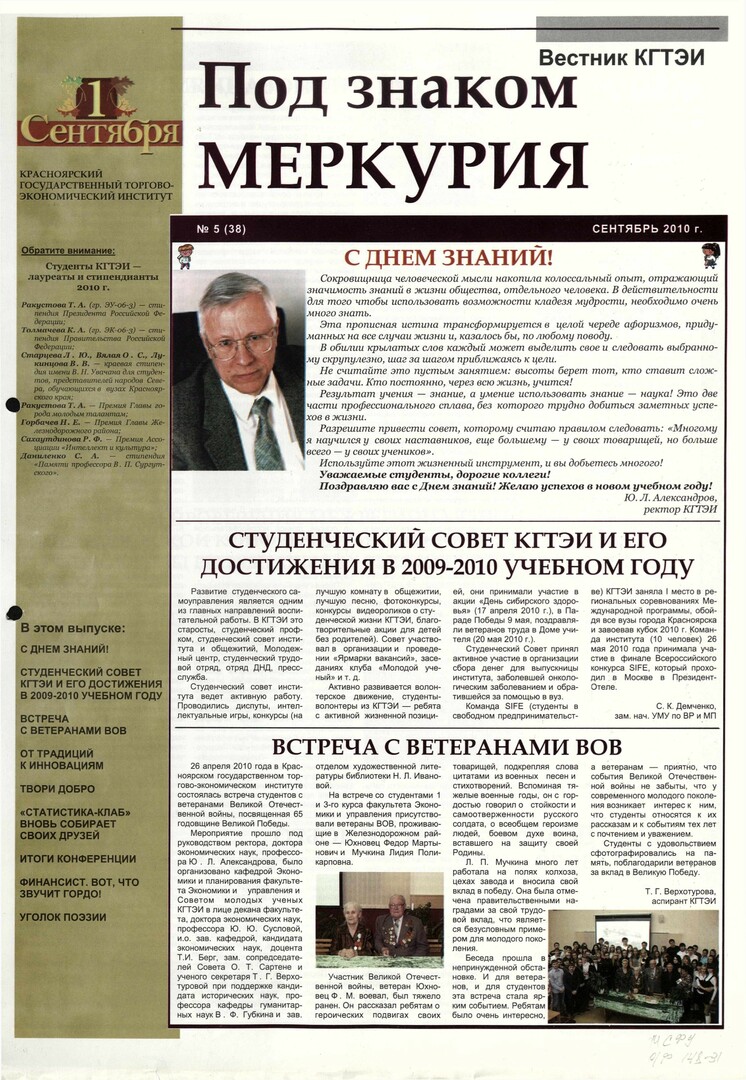 Под знаком Меркурия : Вестник КГТЭИ. 2010 г. № 5 (38) (сентябрь)выпуск журнала/газеты