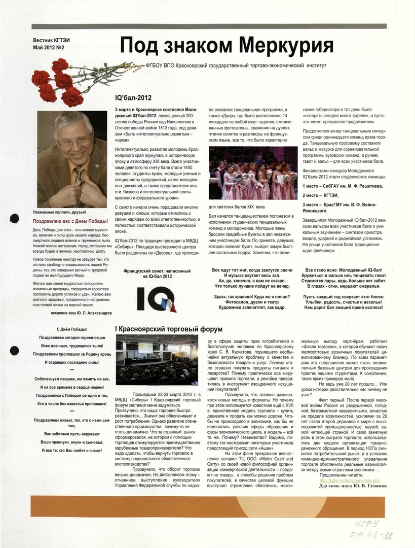 - [Поздравление] : [ректор КГТЭИ поздравляет с Днем Победы]. — С. 1.Ю. Л. Александров