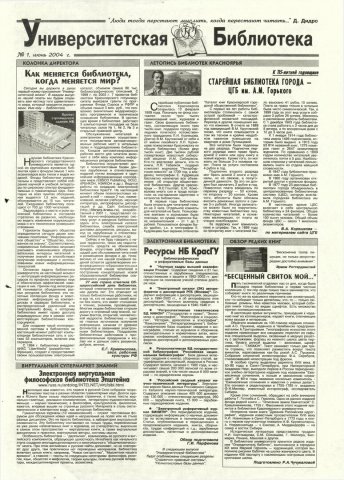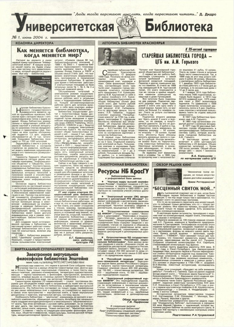 Университетская библиотека : газета. 2004 г. № 1 (июнь)выпуск журнала/газеты