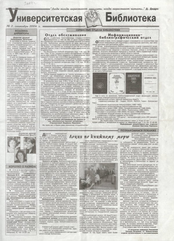 Университетская библиотека : газета. 2004 г. № 2 (сентябрь)выпуск журнала/газеты