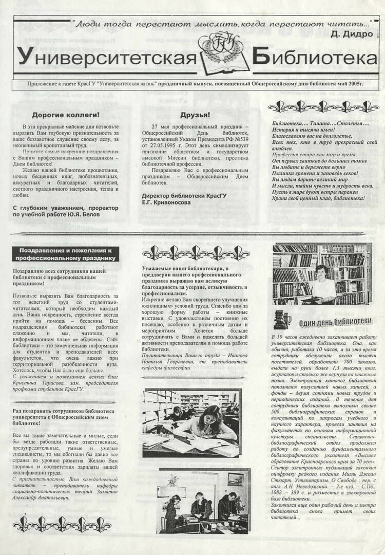 Университетская библиотека : газета. 2005 г. Праздничный выпуск (май)выпуск журнала/газеты