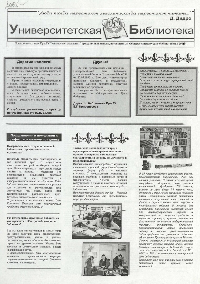 - Один день библиотеки [КрасГУ]. — С. 1.