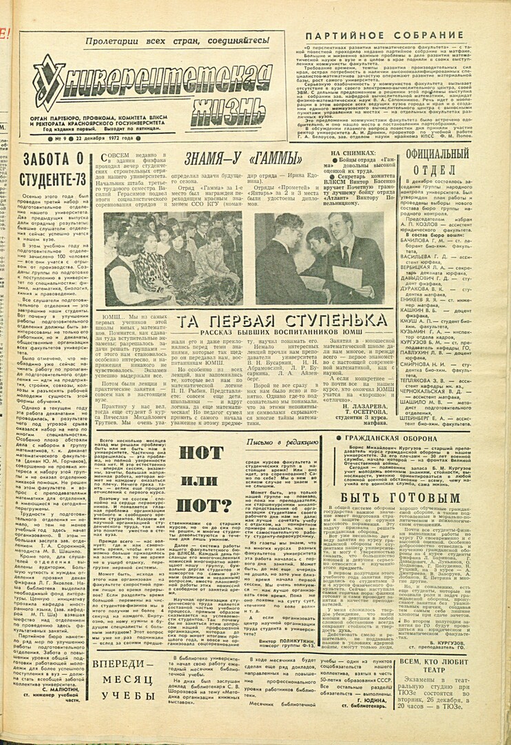 - Та первая ступенька : рассказ бывших воспитанников ЮМШ, [студентов 3-го курса матфака]. — С. 1.
