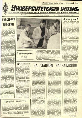 Университетская жизнь : газета. 1973 г. № 16 (27) (25 мая)выпуск журнала/газеты