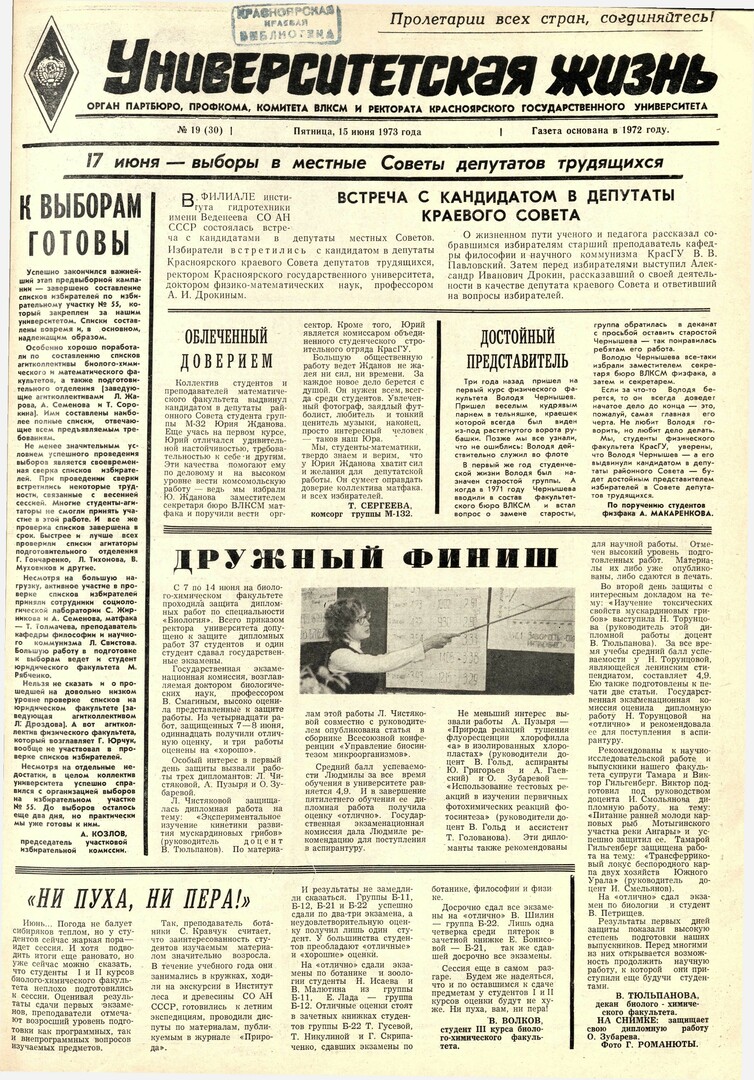 Университетская жизнь : газета. 1973 г. № 19 (30) (15 июня)выпуск журнала/газеты