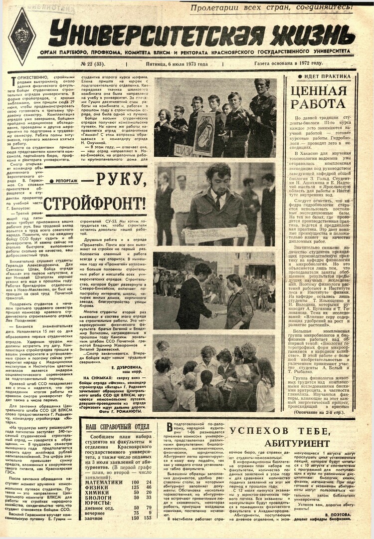 Университетская жизнь : газета. 1973 г. № 22 (33) (6 июля)выпуск журнала/газеты