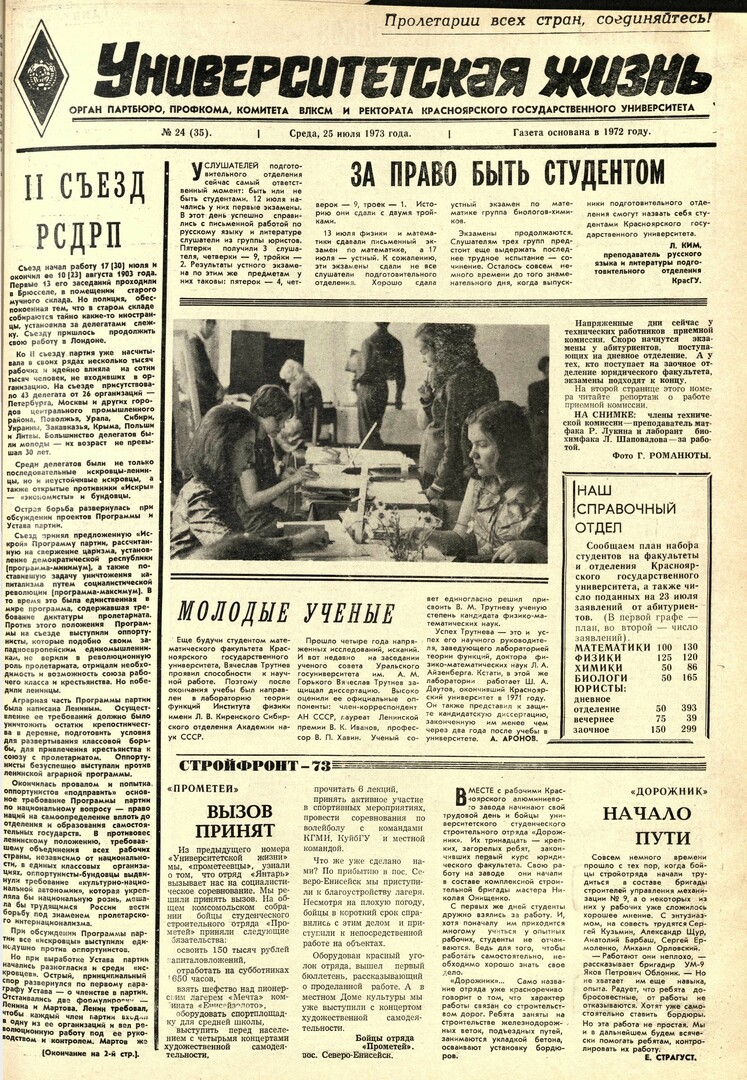 Университетская жизнь : газета. 1973 г. № 24 (35) (25 июля)выпуск журнала/газеты