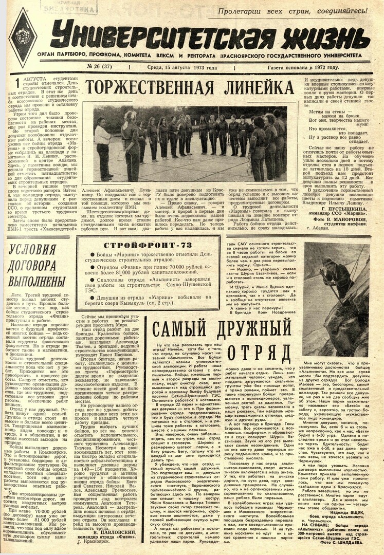 - Самый дружный отряд : [о работе отряда "Альпинист" на строительсте Саяно-Шушенской ГЭС]. — С. 1.