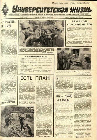 Университетская жизнь : газета. 1973 г. № 27 (38) (22 августа)выпуск журнала/газеты