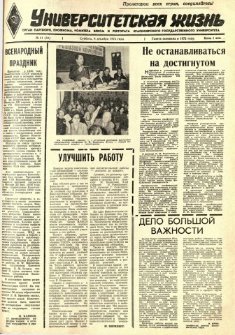 Университетская жизнь : газета. 1973 г. № 41 (52) (8 декабря)выпуск журнала/газеты