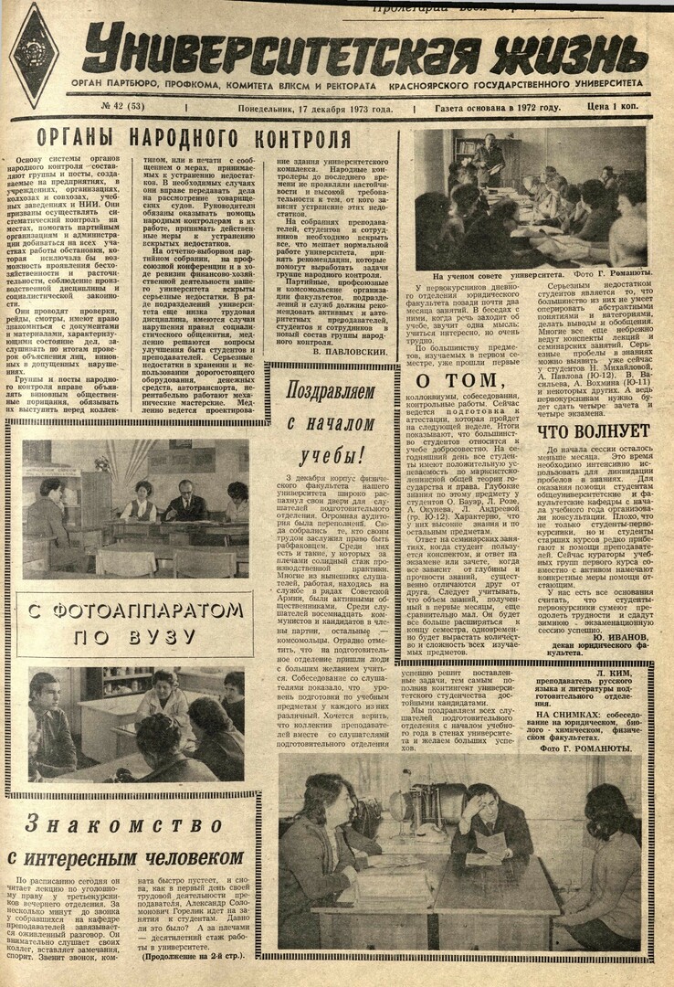- О том, что волнует : [заметка декана юрфака КрасГУ о первокурсниках]. — С. 1.