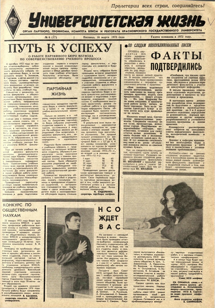Университетская жизнь : газета. 1973 г. № 6 (17) (16 марта)выпуск журнала/газеты
