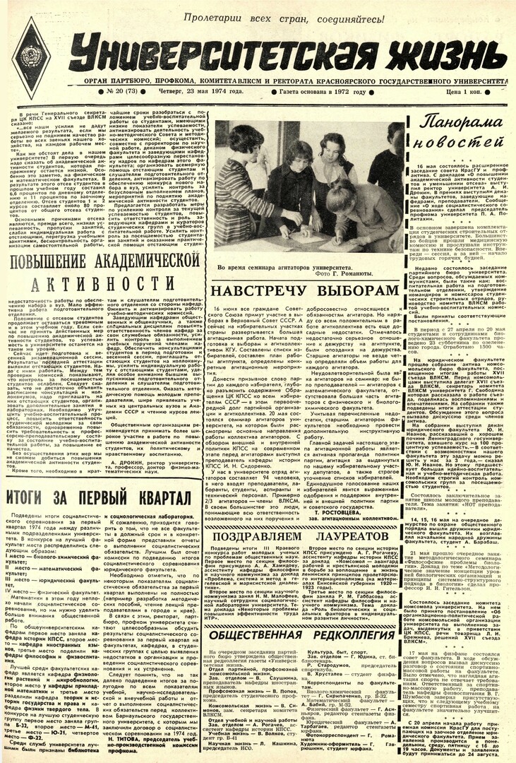 Университетская жизнь : газета. 1974 г. № 20 (73) (23 мая)выпуск журнала/газеты