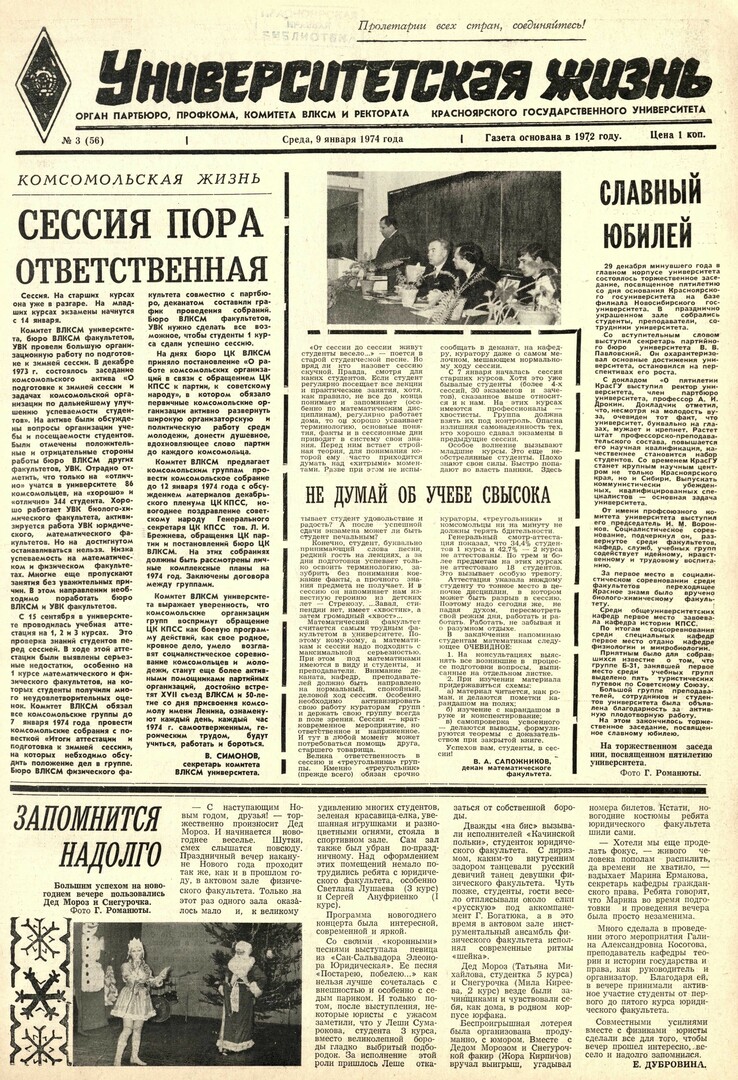 Университетская жизнь : газета. 1974 г. № 3 (56) (9 января)выпуск журнала/газеты