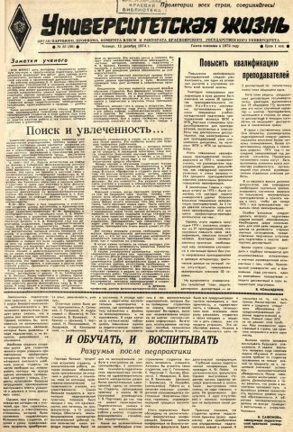 - И обучать, и воспитывать : раздумья после педагогической практики [у студентов 5-го курса биолого-химического, математического и физического факультетов КрасГУ]. — С. 1.