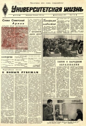 Университетская жизнь : газета. 1974 г. № 9 (62) (25 февраля)выпуск журнала/газеты