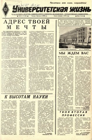 Университетская жизнь : газета. 1975 г. № 2/3 (92) (6 февраля)выпуск журнала/газеты