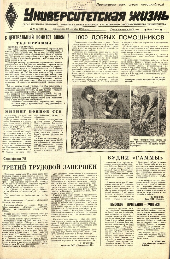 - Будни "Гаммы" : [стройотряд КрасГУ]. — С. 1.