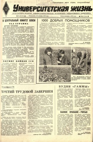 - Высокое призвание - учиться : [о работе стройотрядов КрасГУ]. — С. 1.
