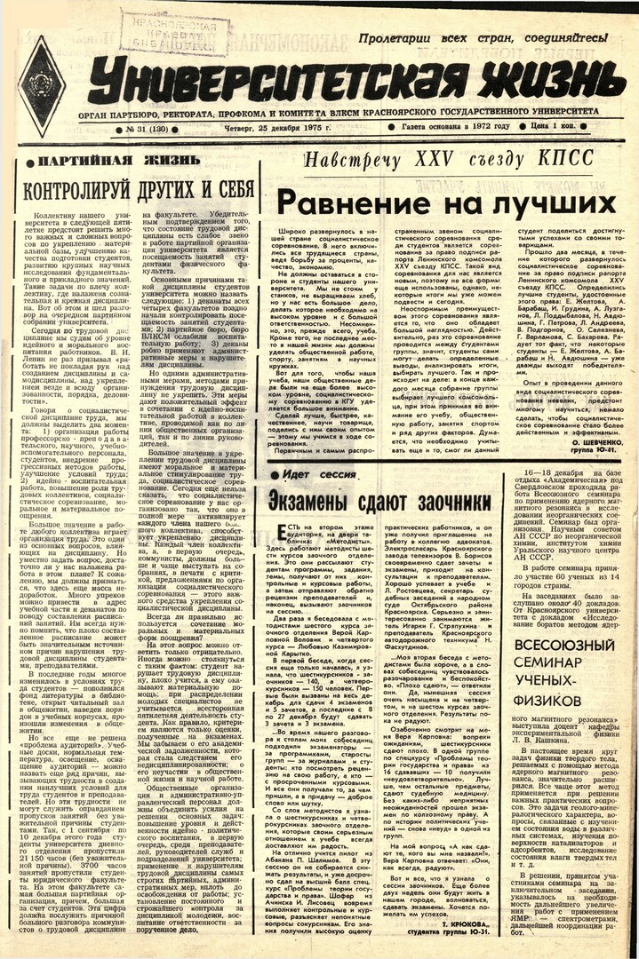 Университетская жизнь : газета. 1975 г. № 31 (130) (25 декабря)выпуск журнала/газеты